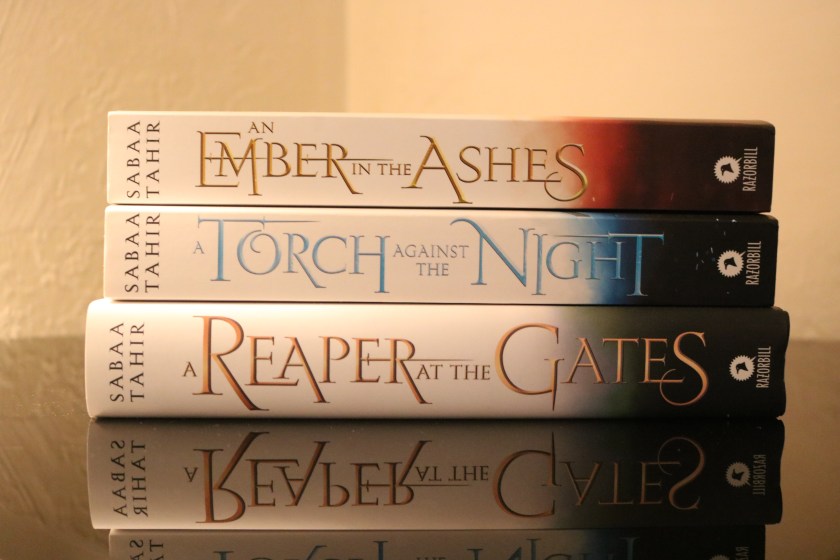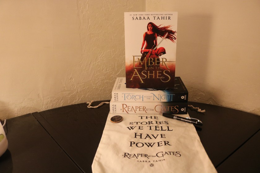 I do have a major regret from this signing event. I was there to mainly meet Tahereh Mafi, but had the opportunity to have Sabaa Tahir sign some books as well. My regret is that I had no books for Sabaa Tahir to sign! I got to see her because my friend did have books from here, but at the time I had not read any of the books in the An Ember in the Ashes series. It was after this signing event that I read the series and hugely regret not having a book for her to sign. It’s a regretful mistake, so all I have is the pictures below I took of the amazing series!